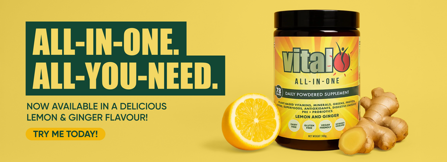Vital All-In-One contains probiotics, prebiotics and digestive enzymes to support the growth of good gut bacteria.