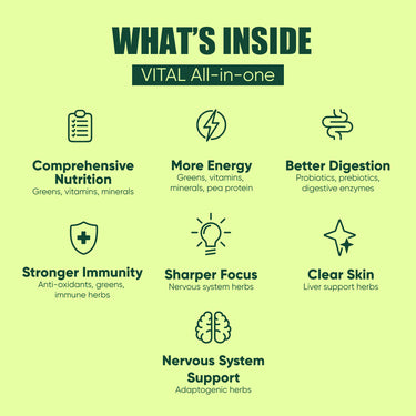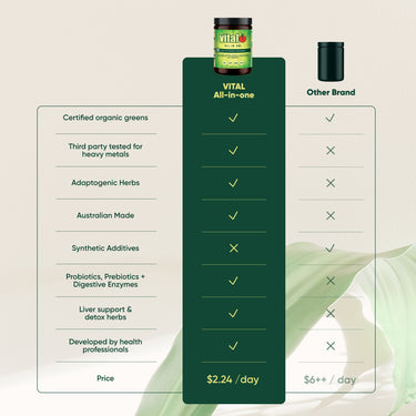 If this does occur, we recommend reducing the serve of Vital All-In-One by half while your body adjusts (approx.. 2 – 4 weeks), and then gradually increase to the full 10g serve.