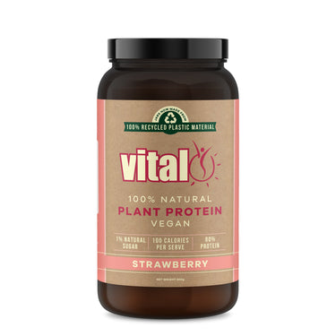 Strawberry: Our newest flavor, Strawberry Vital Plant Protein is perfect for use in smoothies and tastes great mixed with water or milk.