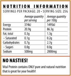 Each serving of Vital Plant Protein is 25gm. A serve delivers 20gm of protein. Select the tub size based on your daily protein needs.